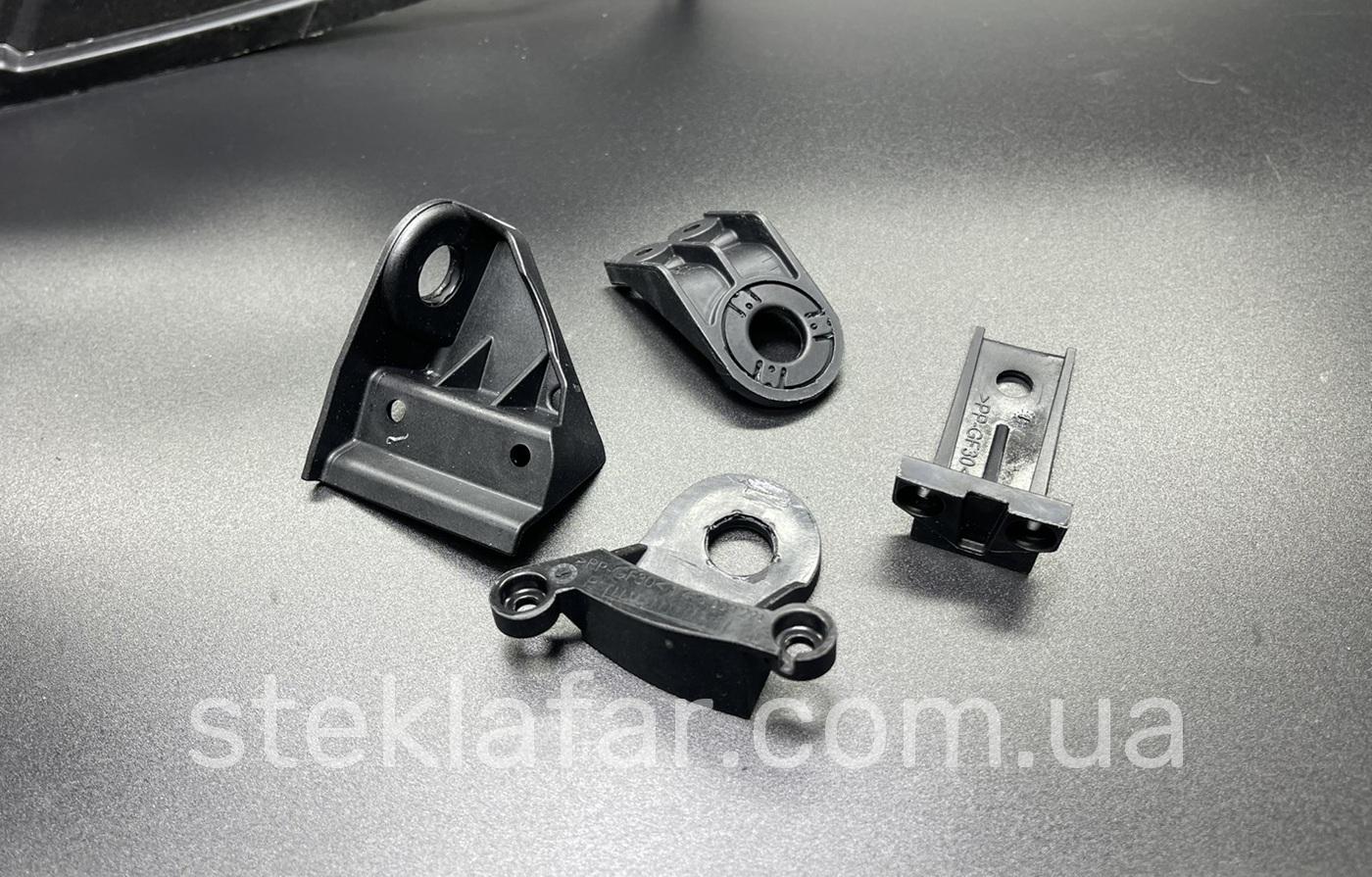 В комплект входят от одного до 5-6 элементов наиболее часто повреждаемых кронштейна (верхнее и боковые крепления). Точный состав подобран специально под типовые повреждения модели.